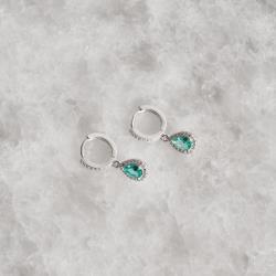 Argola click cravejada 11mm pingente zircônia gota turmalina | Mya Prata