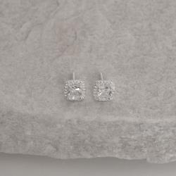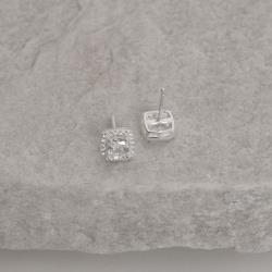 Brinco zircônia quadrada com cravejado cristal 8mm | Mya Prata