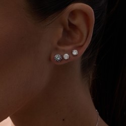 Brinco moissanite rainbow green 6.5mm ródio | Mya Prata