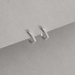 Argola click oval cravejada 11mm detalhe zircônia redonda | Mya Prata