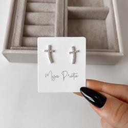 Brinco cruz curva cravejada 15mm | Mya Prata