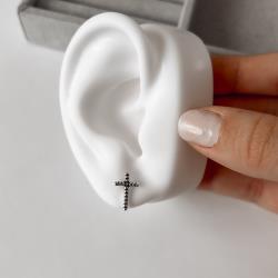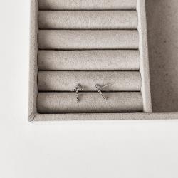 Brinco cruz fio bolinhas envelhecido 13mm | Mya Prata