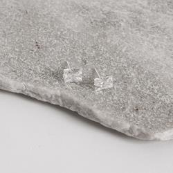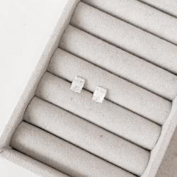 Brinco zircônia retangular cristal 8x6mm | Mya Prata