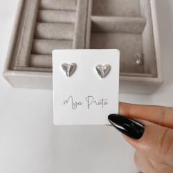 Brinco coração 8mm risco cravejado | Mya Prata