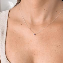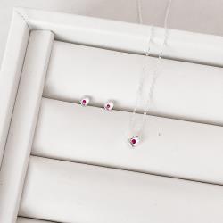 Conjunto brinco e colar coração detalhe zircônia cereja 45+5cm | Mya Prata