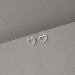 Conjunto brinco e colar coração vazado metade cravejado 12mm 45cm | Mya Prata