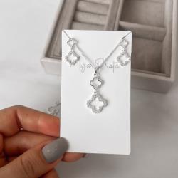 Conjunto brinco e colar trevos vazados liso e cravejado 45cm | Mya Prata