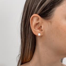 Conjunto brinco e colar trevo madrepérola com cravejado 7mm 40cm com extensor | Mya Prata