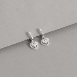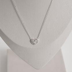 Conjunto argola click 11mm e colar entremeio coração vazado cravejado 11mm 40+5cm | Mya Prata