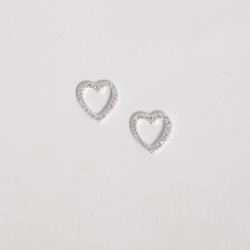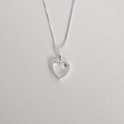 Conjunto brinco e colar coração vazado com cravejado 11mm 45cm | Mya Prata