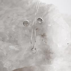 Descrição: Conjunto brinco e colar zircônia redonda embutida 6mm 40cm fabricado(a) em prata