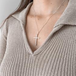 Colar pingente cruz palito 30mm 45cm | Mya Prata