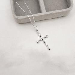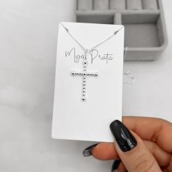 Colar pingente cruz fio bolinhas 30mm 45cm | Mya Prata