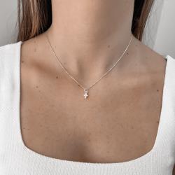 Colar pingente cruz cravejada 7mm 40cm | Mya Prata