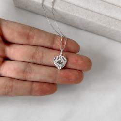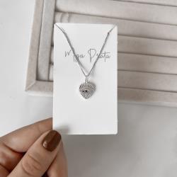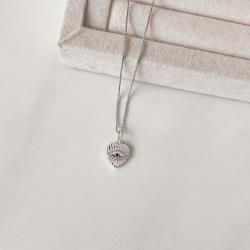 Colar pingente coração detalhe olho cravejado 12mm 45cm | Mya Prata
