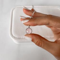 Colar pingente quartzo rosa 12mm 45cm | Mya Prata