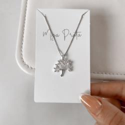 Colar pingente árvore folhas com zircônias 16mm 45cm | Mya Prata