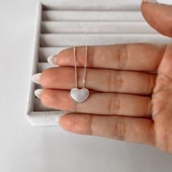 Colar coração cravejado passante 12mm 45cm | Mya Prata