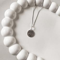 Colar pingente medalha Meu filho tem 4 patas Gato resina 12mm 45cm | Mya Prata