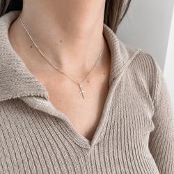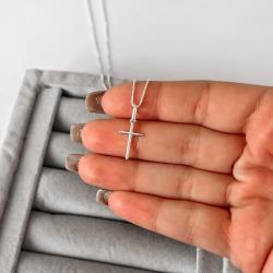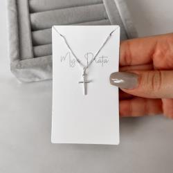 Colar pingente cruz palito 14mm 40cm | Mya Prata