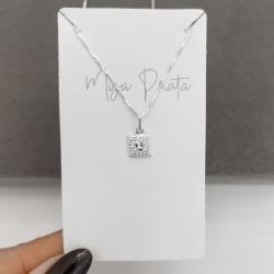 Colar pingente quadrado cravejado 8mm 45cm | Mya Prata