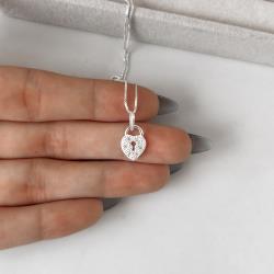 Colar pingente cadeado coração cravejado 13mm 45cm | Mya Prata