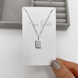 Colar pingente placa letra G 12mm 45cm | Mya Prata