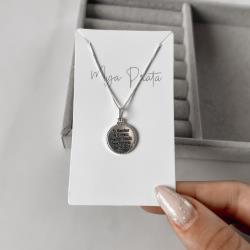 Colar pingente medalha Salmo 23:1 envelhecido 15mm 45cm | Mya Prata