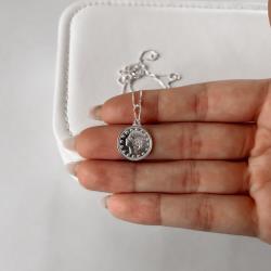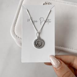 Colar pingente medalha moeda libra 15mm 45cm | Mya Prata