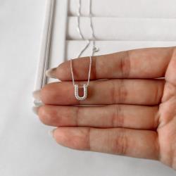 Colar letra U cravejada 9mm 45cm | Mya Prata