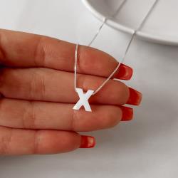 Colar madrepérola letra X 45cm | Mya Prata