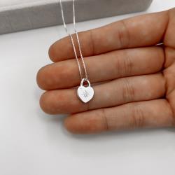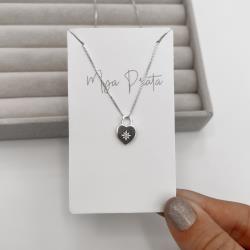 Colar cadeado coração detalhe zircônia 14mm 45cm | Mya Prata