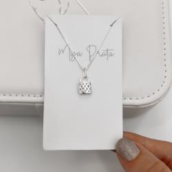 Colar pingente cadeado vazado 11mm 45cm | Mya Prata