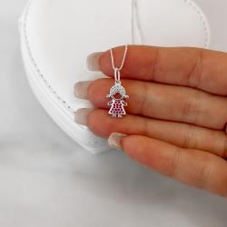 Colar pingente menina cravejada rosa 14mm 45cm | Mya Prata
