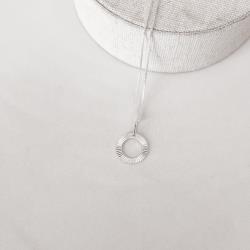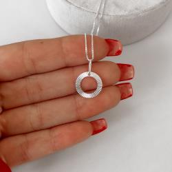 Colar pingente círculo vazado riscado 13mm 45cm | Mya Prata