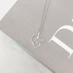 Colar pingente dois corações vazados com zircônia 21mm 45cm | Mya Prata