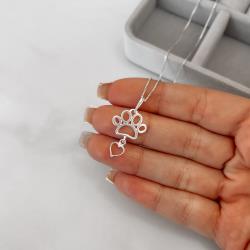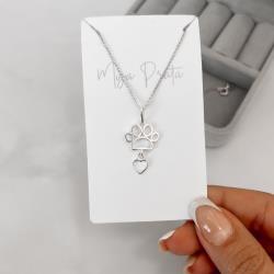 Colar pingente pata e coração vazados 22mm 45cm | Mya Prata