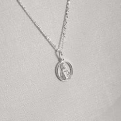 Colar pingente medalha Nsa. Sra. Aparecida cravejada 14mm corrente cadeadinho 45cm | Mya Prata