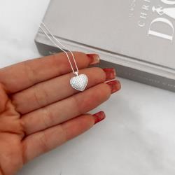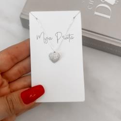 Colar pingente coração cravejado 11mm 40+3cm | Mya Prata