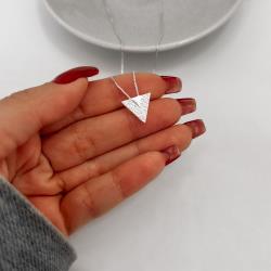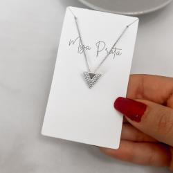Colar triângulo liso e cravejado 12mm 45cm | Mya Prata
