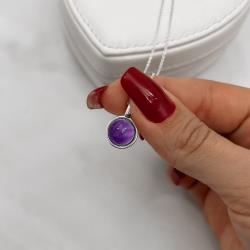 Colar pingente ametista 12mm corrente cadeado 45cm | Mya Prata