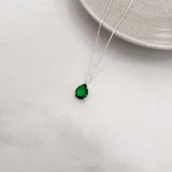 Colar pingente zircônia gota esmeralda 10x8mm elo cravejado corrente cadeadinho 45cm | Mya Prata