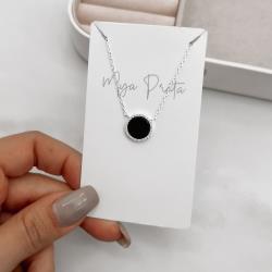 Colar círculo pedra ônix com cravejado 12mm corrente cadeado 45+5cm | Mya Prata