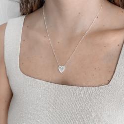 Colar coração madrepérola com cravejado 13mm corrente cadeado 45+5cm | Mya Prata
