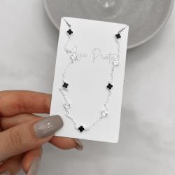 Colar entremeio trevos pedra ônix e vinco 5mm corrente cadeado 60+5cm | Mya Prata