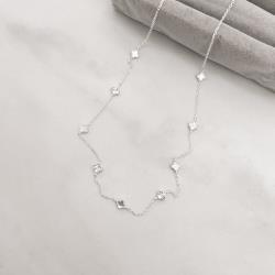 Colar entremeio trevos madrepérola e vinco 5mm corrente cadeado 60+5cm | Mya Prata