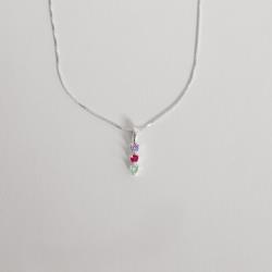 Colar pingente 3 zircônias coloridas 12mm 45cm