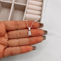 Colar pingente zircônia retangular 7mm 40cm | Mya Prata