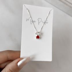 Colar menina com zircônia coração cereja 12mm 45cm | Mya Prata