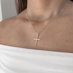 Colar pingente cruz palito 25mm 45cm | Mya Prata